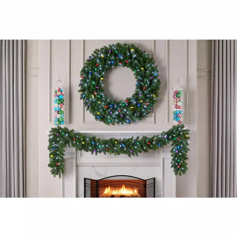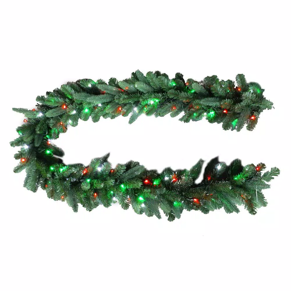 Add some sparkle to your home this holiday season with the 9 ft. Royal Grand Spruce Garland. Illuminated with micro-style red, green and cool white light LED lights, the natural-looking garland is perfect for above your entryway, fireplace or stairway rail. Rated for indoor and outdoor use, it’s a festive complement to your existing holiday decorations.