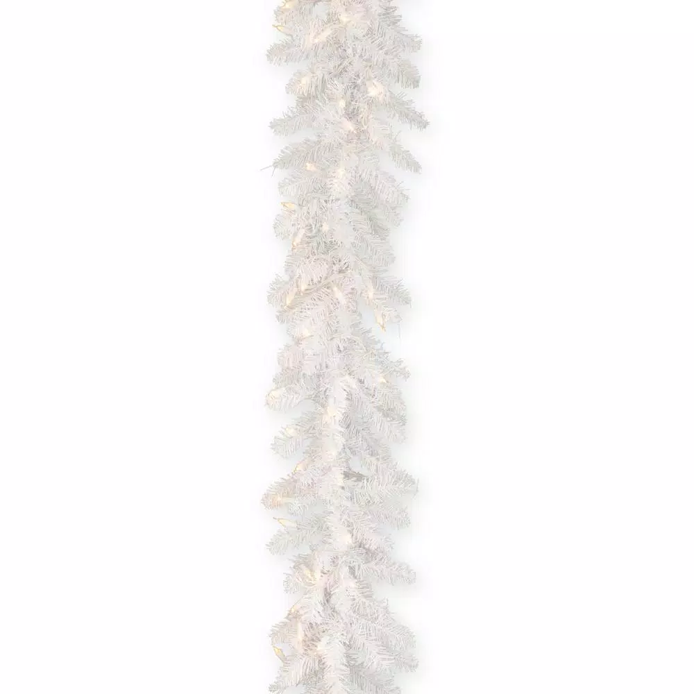 The Dunhill White Fir is an attractive alternative to the traditional green holiday decoration. It is pre-strung with 100 clear lights that remain lit even if a bulb burns out. Personalize your garland by adding berries, holly, cones or other deco found at local craft stores. This wreath can be displayed on doors, walls and windows in indoor or covered outdoor locations.