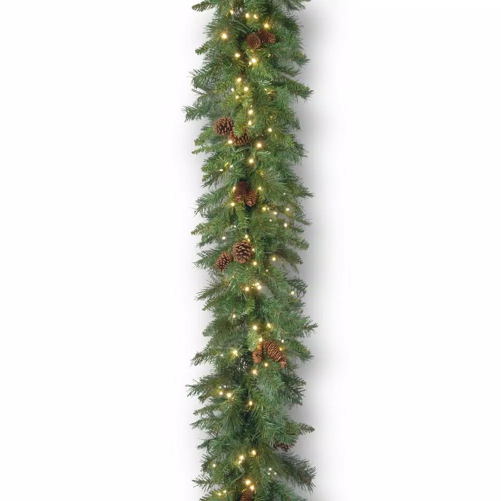 The Garwood Spruce garland features an extra-large width and is trimmed with pine cones for natural appeal. It is pre-strung with 300 warm white LED lights that are energy-efficient and long-lasting. This indoor/outdoor garland can be displayed over doors, windows, fireplace mantels, fence or stairway railings.