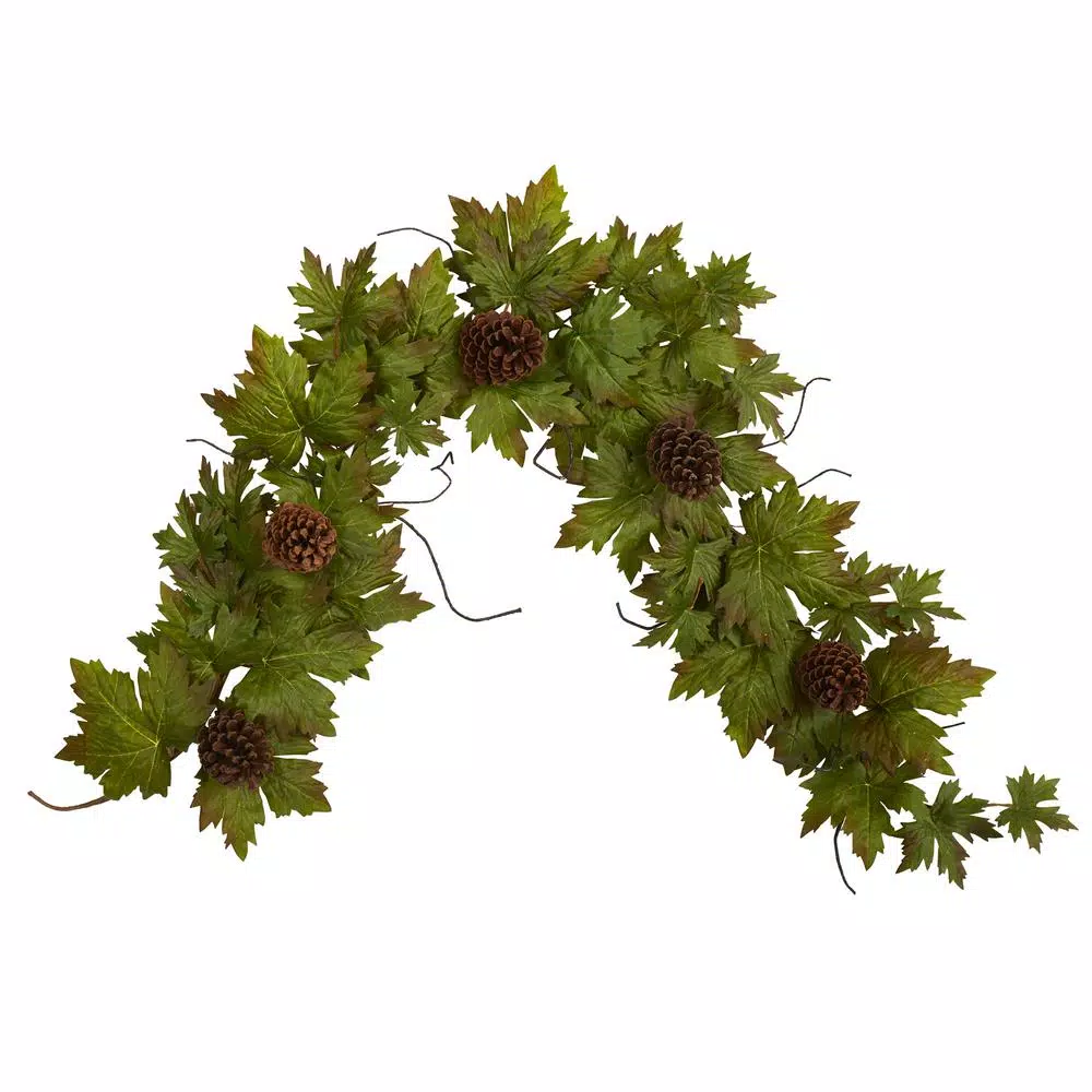 Update your holiday decor scheme this season with the help of this artificial garland. Intricately designed with realistic looking maple leaves in a palette of year-round evergreens, it comes carefully accented throughout with faux pinecones that look incredibly lifelike. Perfect for sprucing up a bare mantle, counter, or banister, this 5 ft. L decorative garland would undoubtedly make a handsome accent wherever displayed. Silk plants are manufactured using synthetic materials, such as polyester material or plastic, and are well designed and constructed to be life-like in appearance. This item will need to be re-shaped when removed from the secure box to allow it to reach its fullest size. Your artificial plant will look beautiful for years to come, simply wipe clean with a soft dry cloth when needed. About Nearly Natural Inc. – For over 75-years, Nearly Natural Inc. has been providing conscientious consumers with beautiful alternatives to natural decorations. Employing and advised by naturalists who understand the live plant world, Nearly Natural is able to recreate the most realistic-looking decorative items for homes, offices, and businesses. Driven by a true commitment to customer service, attention to detail, and natural philosophy, Nearly Natural strives to bring customers the most beautiful, unique, and striking faux plants and floral on the market.