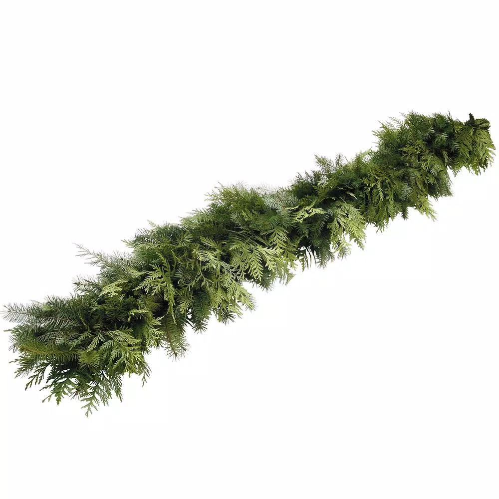 - Mixture of Douglas Fir, aromatic and a favorite classic and Western Red cedar intertwine to create this natural flowing garland, enhance with lights, bows and ornaments to suit your decor and to make them even more festive