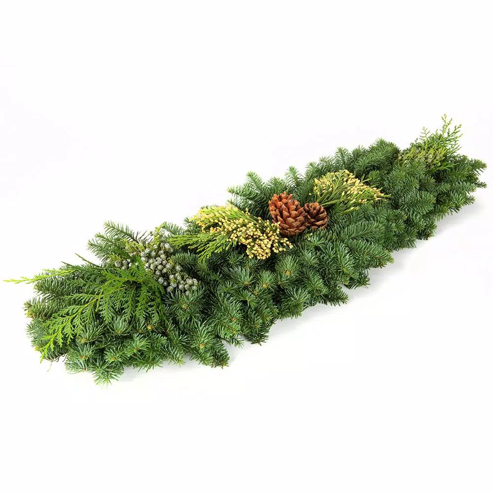 - Versatile 4 ft. mantel garland is festive blend of fresh fragrant noble fir, blue berried juniper, incense cedar and ponderosa pine cone use just about anywhere, on mantel, table, side board, kitchen counter or use as a door swag can’t go wrong and never the wrong choice, enhance with lights, bows and ornaments to suit your decor and to make them even more festive