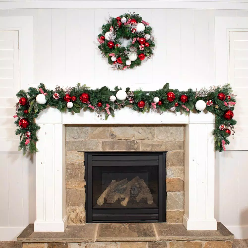 Christmas Wreaths are a must have if you want to impress your guests during the holidays and this one of a kind wreath is sure to meet those expectations. The Nordic red and white wreath is a modern 24 in. Christmas Wreath which features a handcrafted design complete with red and white ornaments decorated with Nordic-style patterns. Enjoy a modern touch on traditional minimalist wreaths that works great as an indoor or outdoor wreath. The life-like artificial wreath is perfect either indoors or outdoors, whether you want to hang it above your fireplace mantle or display it on your front door. Either way, be sure to complete the look with a matching 9 ft. garland.