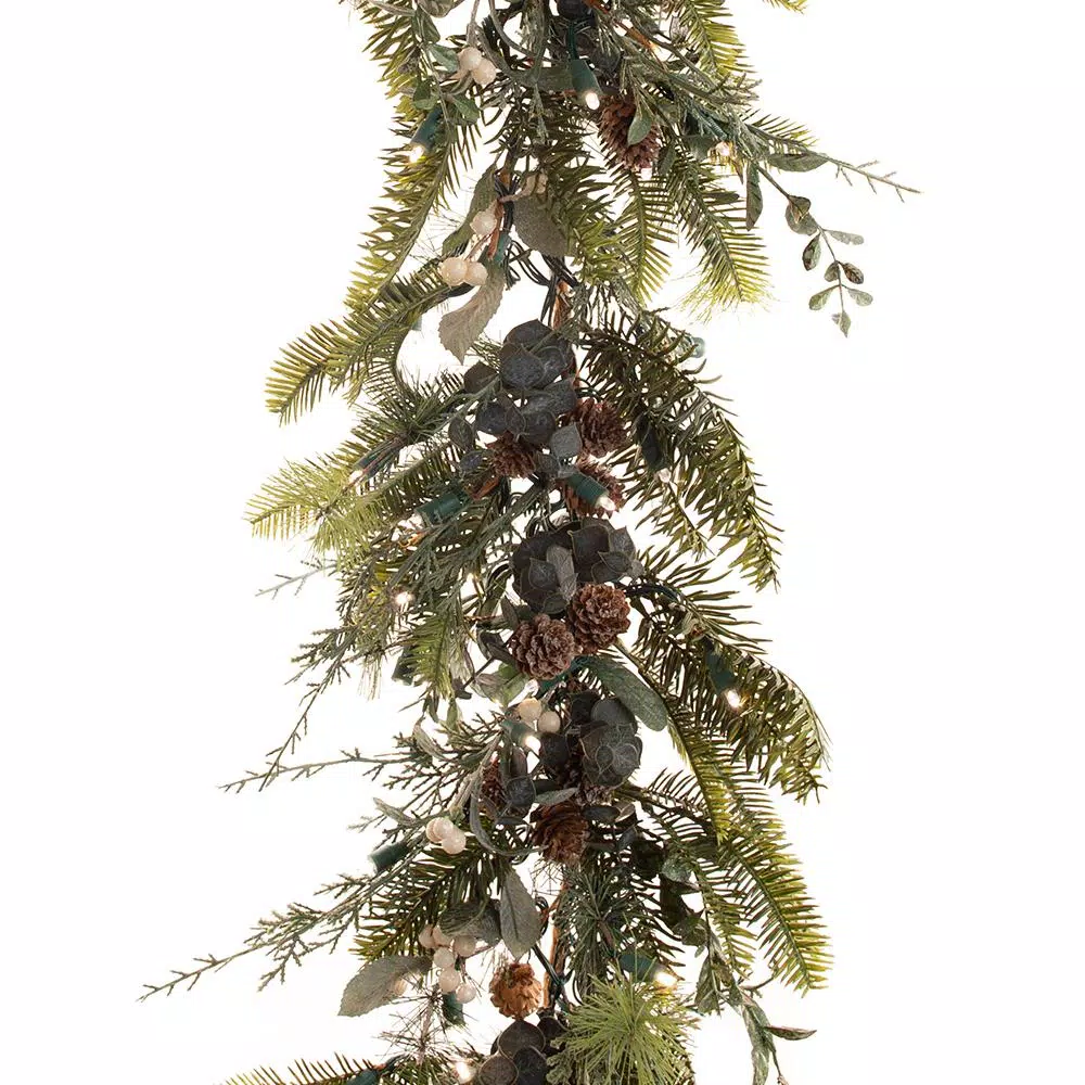 Christmas garlands are a must have if you want to impress your guests during the holidays, and this one of a kind garland is sure to meet those expectations. The Rustic White Berry garland is a pre-lit, remote-controlled, battery-operated Christmas garland with 100 LED mini lights. 9 ft. from tip to tip, the Rustic White Berry garland features a handcrafted design complete with white berries, pinecones, and realistic greenery to give a modern touch on traditional minimalist garlands. The life-like artificial garland is perfect either indoors or outdoors, whether you want to hang it on your fireplace mantle, or display it above your front door. Either way, be sure to complete the look with a matching wreath.