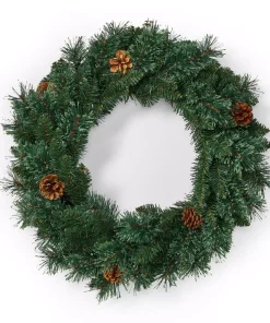 Christmas Greenery Worcester Wreath 24 In. Pre-Lit Classic Fresh Wreath With Red Velvet Bow : Multiple Ship Weeks Available