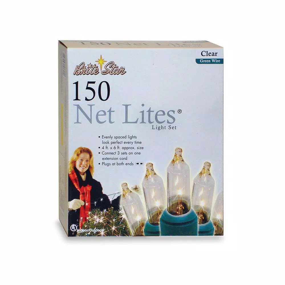 These beautiful 150 count Clear Colored Net Lights are 5 mm Micro Mini and are 4 ft. x 6 ft. each. With the small bulbs, and green wire your tree or bush will look as if it has little specs of lights. They are UL listed and intended for or outdoor use. Made of PVC, metal, and glass. Made in China.