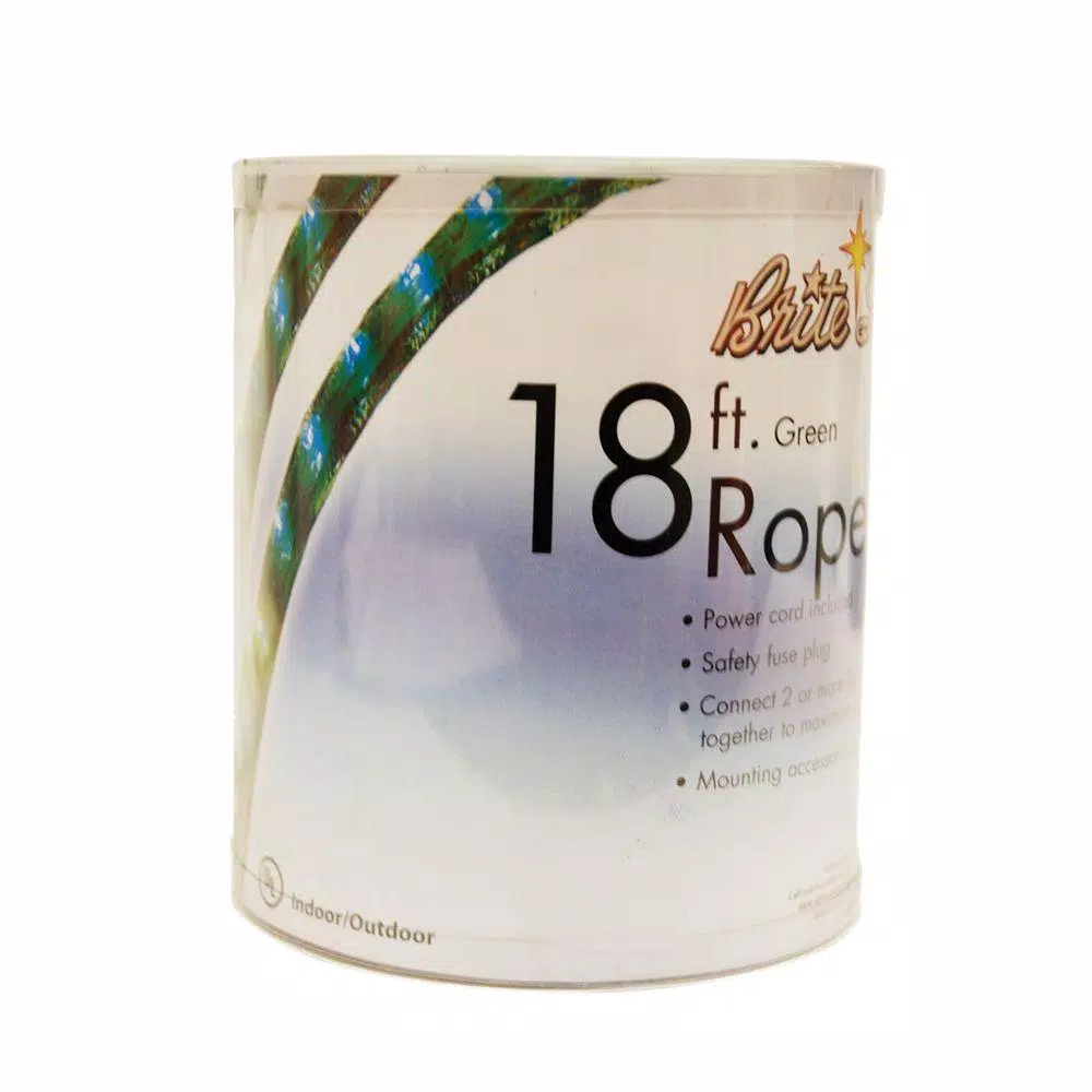 Add a modern, sleek design to your holiday decorating with this Green 18 ft. Mini Rope Light. The rope is green with clear lights inside. Measures 18 ft. long and can be used for interior design around mantles, doors and windows. Or, wrap the rope light around trees, patios or columns to create a jolly green glow outside.