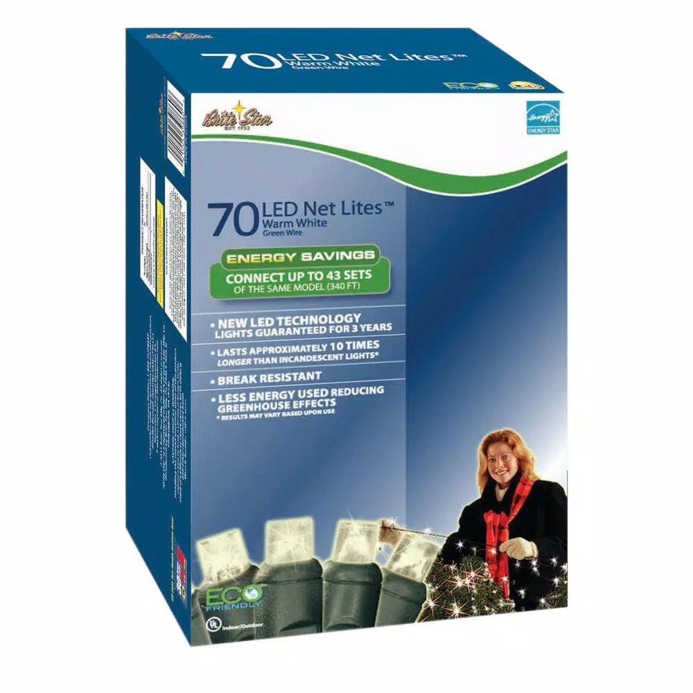Add some sparkle to your holiday decor with this 70-Light LED Pure White Micro Mini 4 ft. x 6 ft. Net Light Set. With the small bulbs and green wire, your tree or bush will look as if it has little specs of lights. They are UL listed and intended for indoor or outdoor use.