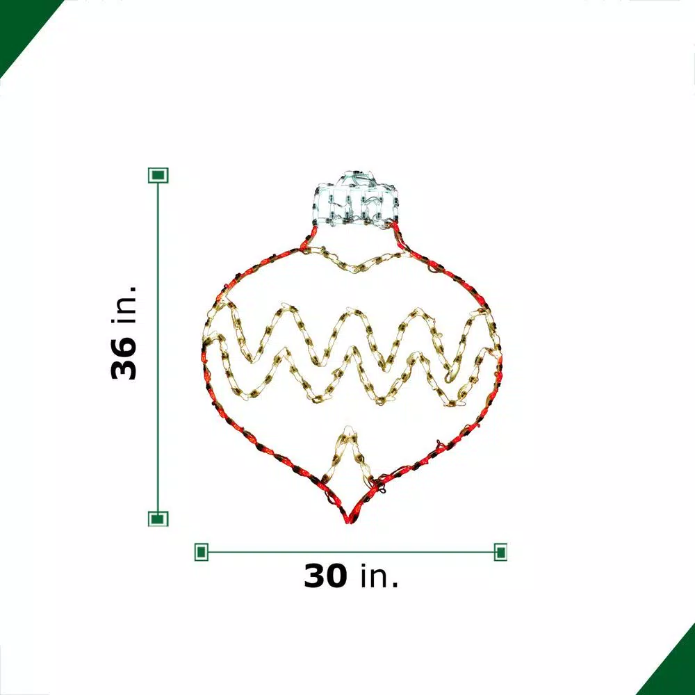 - Oval drop ornament light measures 36 in. tall x 30 in. W
