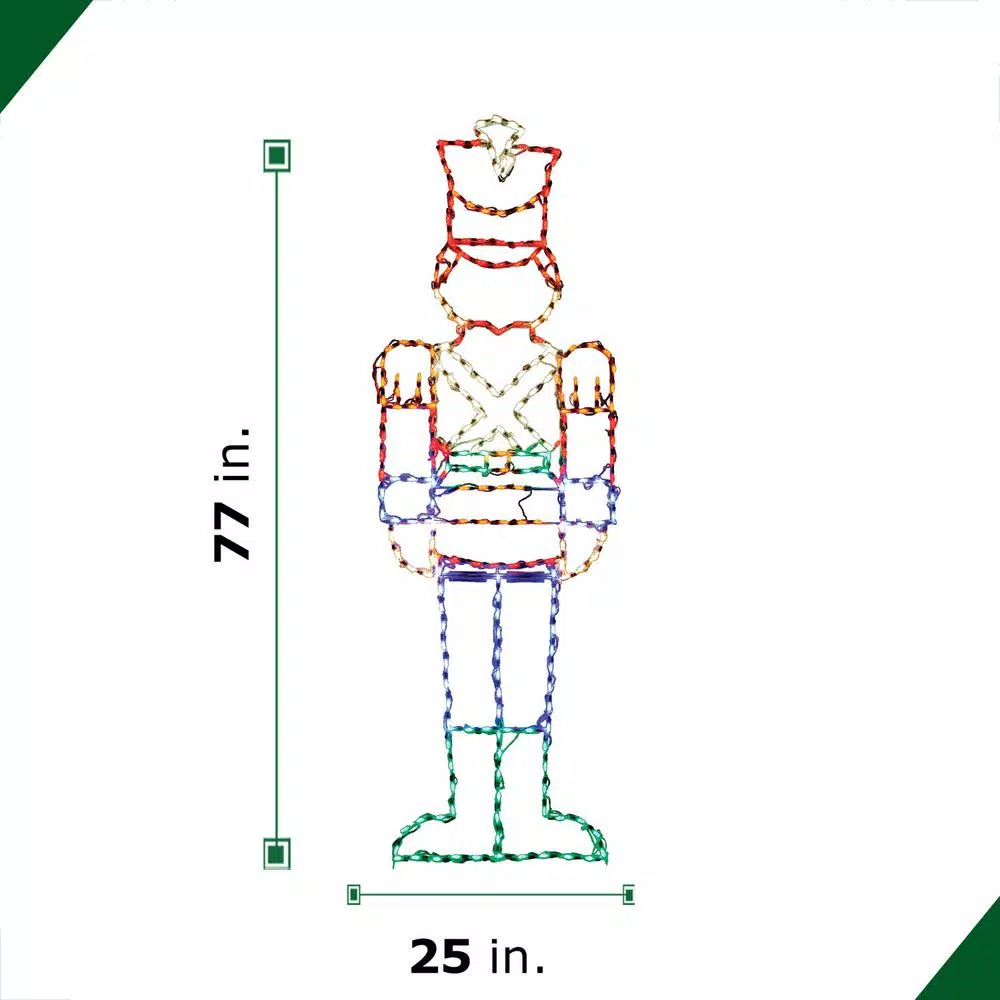 - Giant toy soldier light measures 77 in. tall x 25 in. W