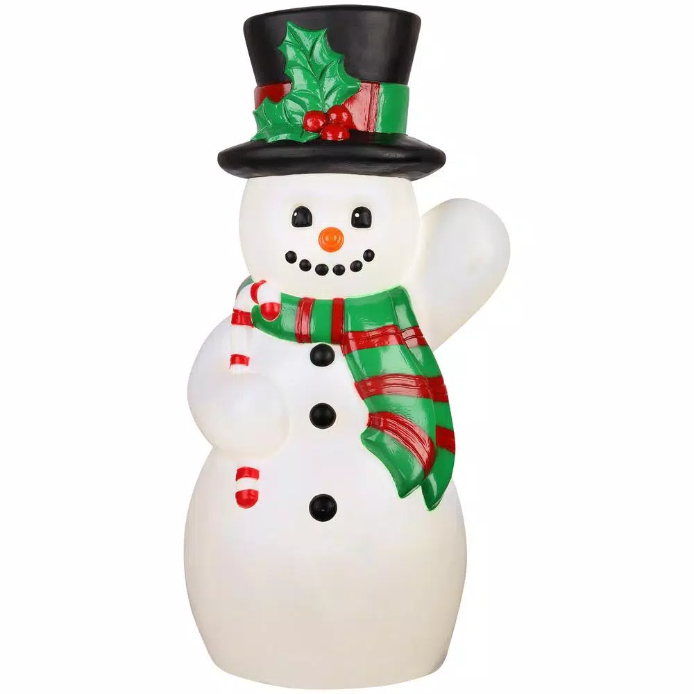 This classic snowman blow mold makes a delightful addition to your Christmas decorations. It features a vintage design for a nostalgic look. Weather-resistant for both indoor or outdoor use, our snowman blow mold lights up for day or night visibility. Pair 2 to create an eye-catching entrance.