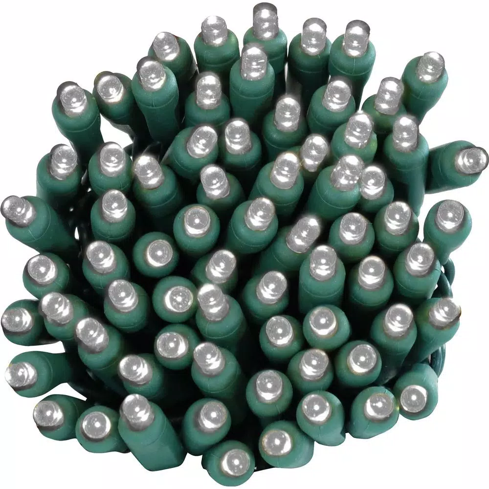 - 22 ft. of lighted length: 23 ft. overall strand length with 22 ft. lighted, LEDs are spaced 3.5 in. apart, each bulb is 0.19 in. T (5 mm) and 0.25 in. L (1 in. including the socket base), 0.6 lb., 8 Lumens per bulb, color temperature: 10000K
