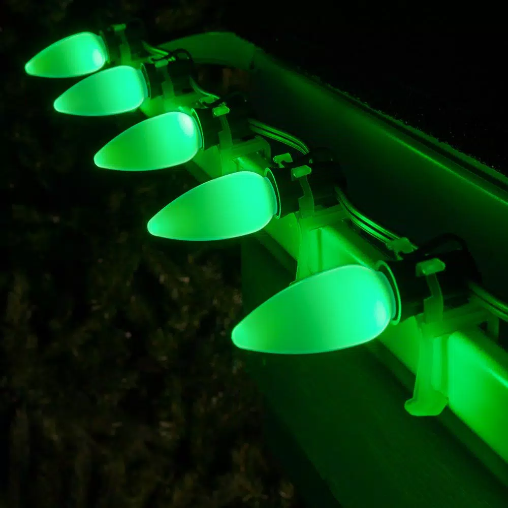 - Box of 25 C9 green smooth/opaque OptiCore LED Christmas light bulbs, E17 base; fits any standard C9/E17 socket