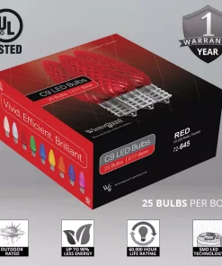 Christmas Lights Wintergreen Lighting OptiCore C9 LED Red Faceted Christmas Light Bulbs (25-Pack)