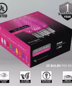 Christmas Lights Wintergreen Lighting OptiCore C9 LED Pink Faceted Christmas Light Bulbs (25-Pack)