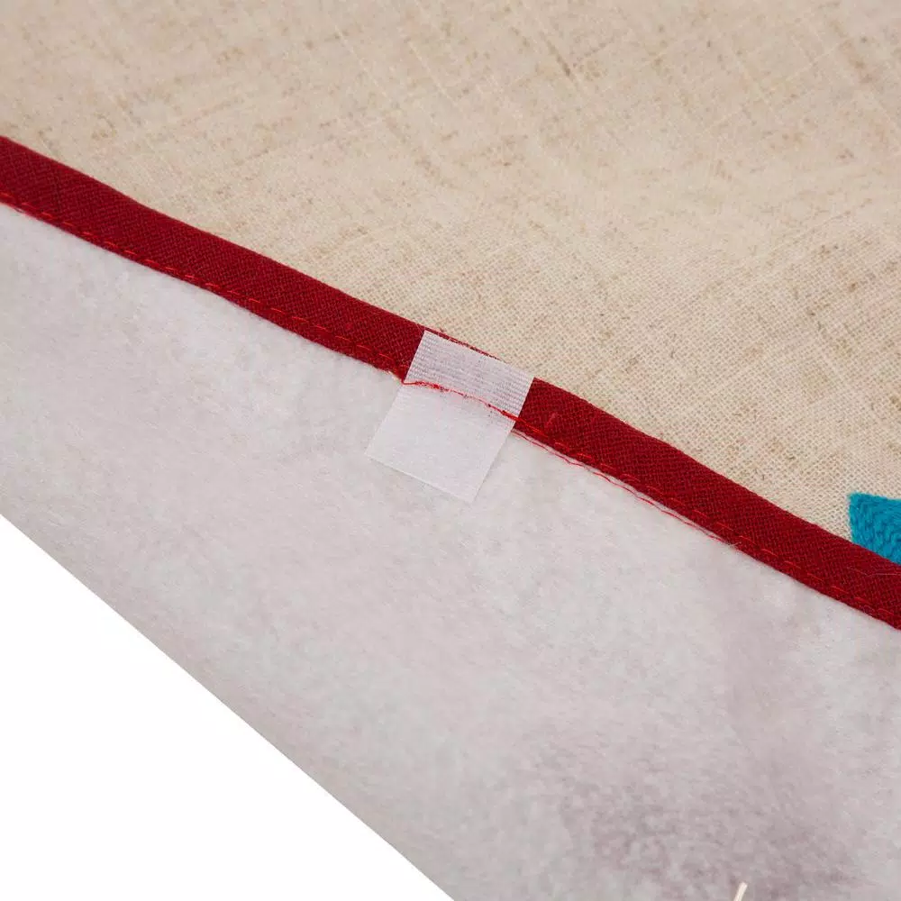 Add a bright, twinkling touch to your Christmas tree with this tree skirt. Bring a touch of nature’s charm to your Christmas decor with this lovely linen tree skirt. Features embroidered colorful branch and word Merry Christmas. Trimmed with a red border.