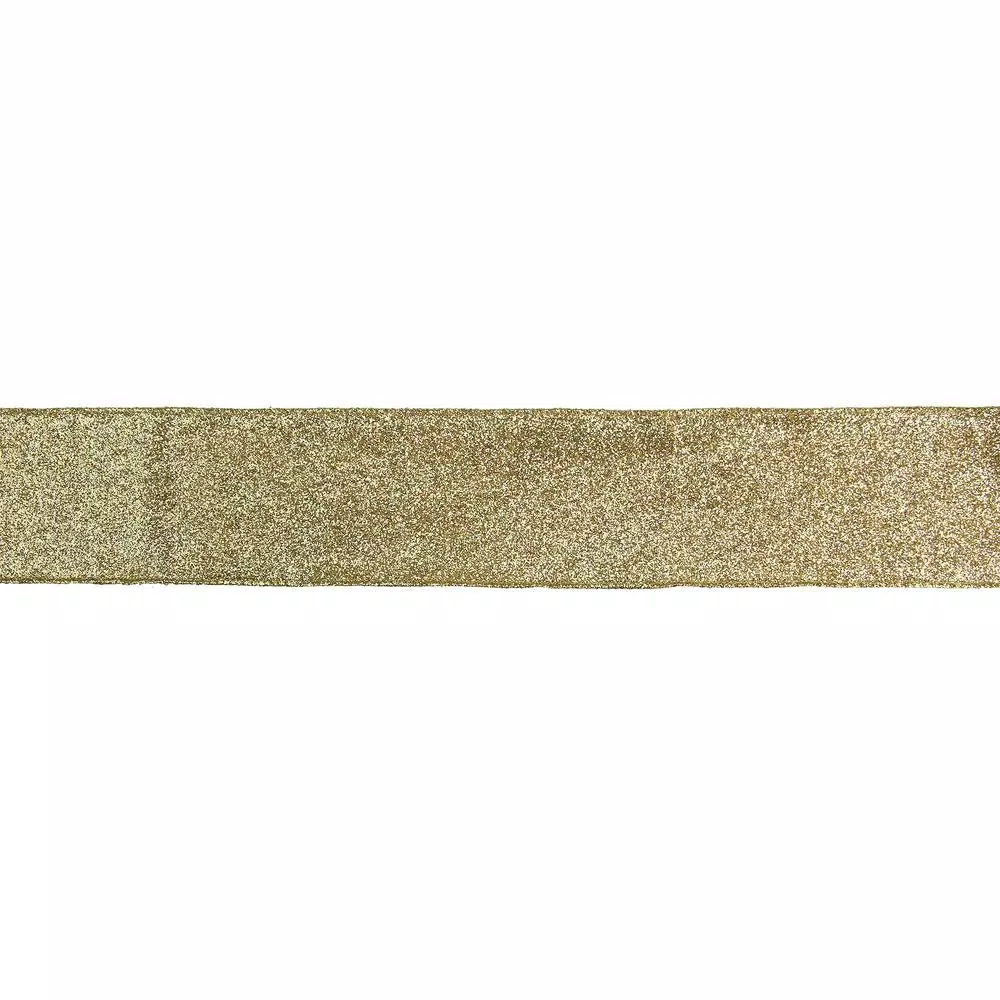This gorgeous shimmering gold sparkling ribbon would be a great way to decorate your gifts and home for the holiday season. The wired ribbon will help everyday designs maintain their shape and beauty. Whether you’re a florist an event planner or crafter wired edge ribbon is a dream to work with. Add this ribbon to Christmas gifts wreaths or trees for sparkle and beauty. Features: Ribbon has a metallic glitter texture. Sewn wire edged ribbon allows you to bend and shape your creations to decorate with ease. Has a sparkle gold trim. Ribbon comes on (1) spools. Dimensions of each spool: 2.5 in. W x 16 yds. in length. Material(s): polyester.