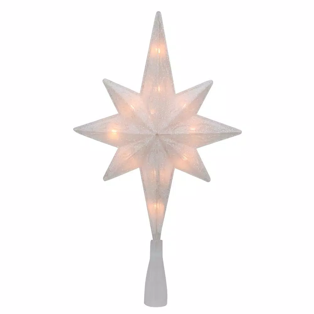 - Lighted clear frosted star of Bethlehem Christmas tree topper