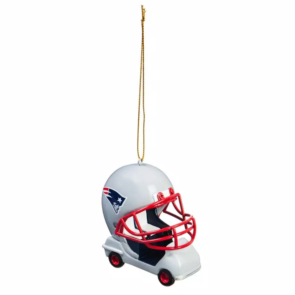 This whimical little field cart Christmas ornament is sure to inspire nostalgia for any New England Patriots fan. The cart is designed like a football helmet with team logos and is incredibly detailed. Makes the perfect gift.