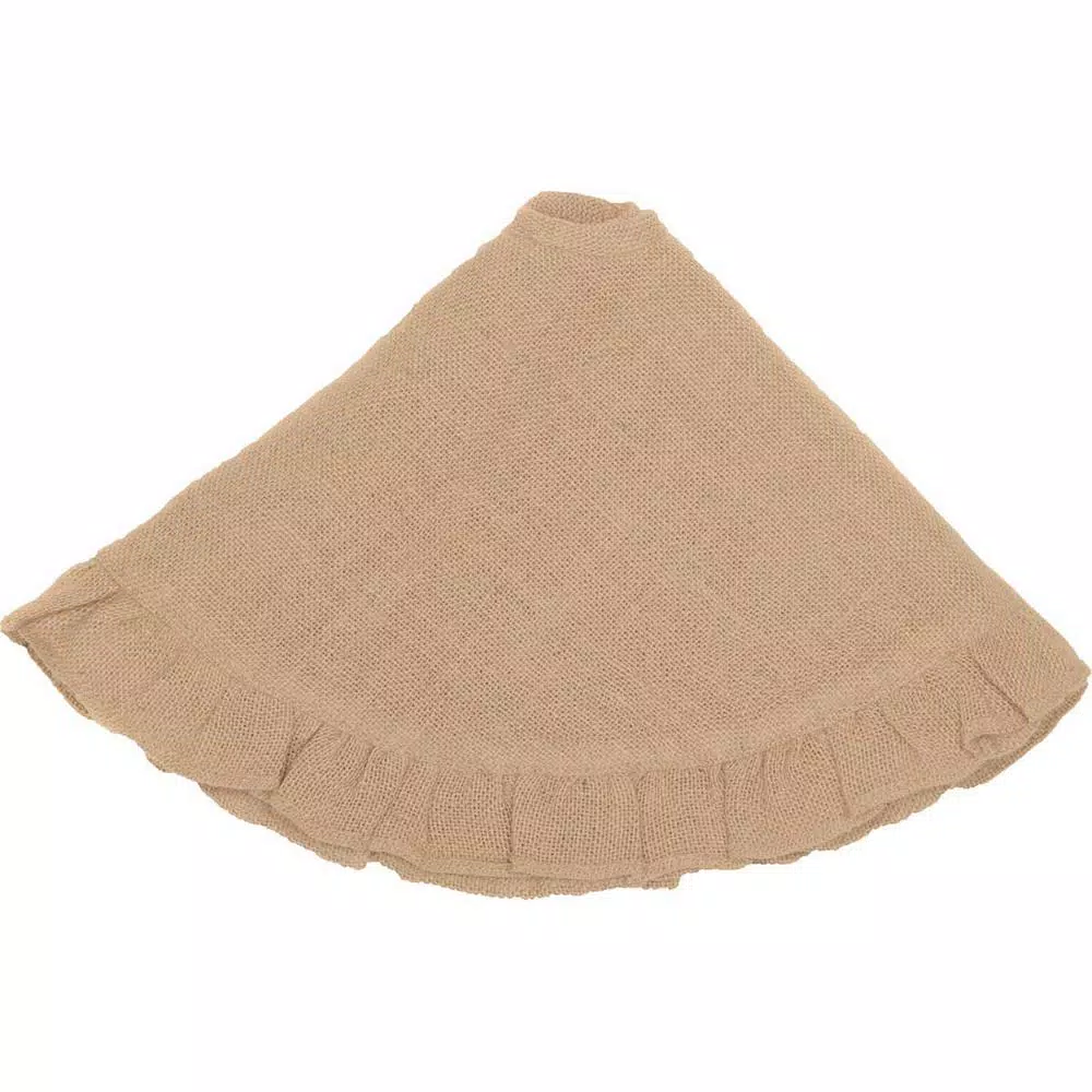 The Jute Burlap Natural Tree Skirt features a raw and unprocessed jute look for an original burlap bag feel. Textured and tactile, this jute is soft enough to prominently feature in your home while maintaining a rough-hewn aesthetic. Finished with half in. fringes hanging from turned cuff to complete this down-to-earth country Christmas look. Lined with flannel for a winter warming effect.