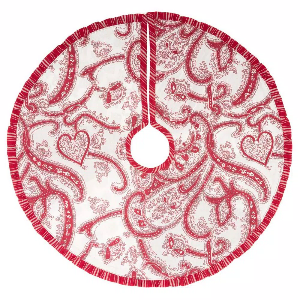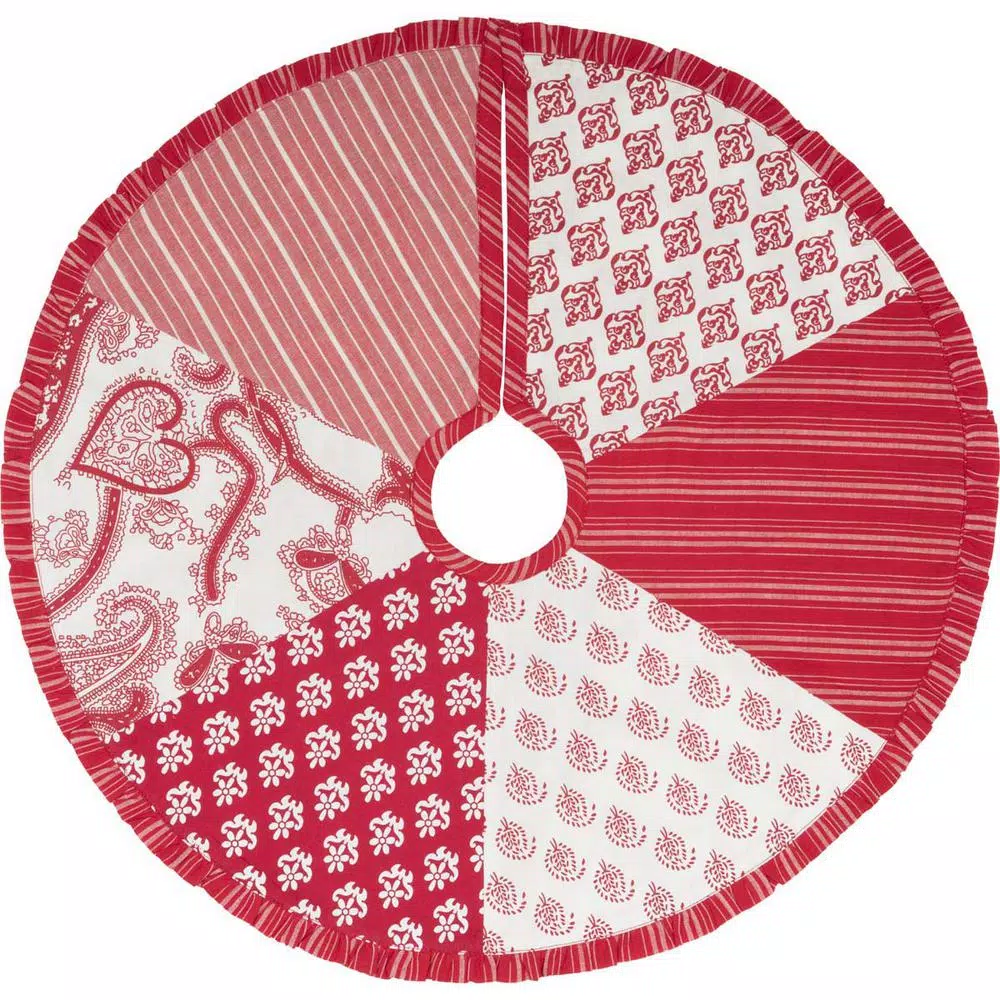 - Trimmed with 0.5 in. cherry red and white stripe gathered ruffle