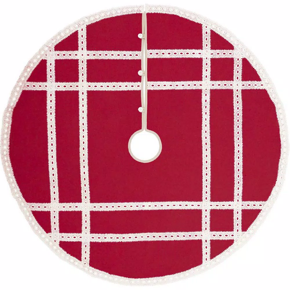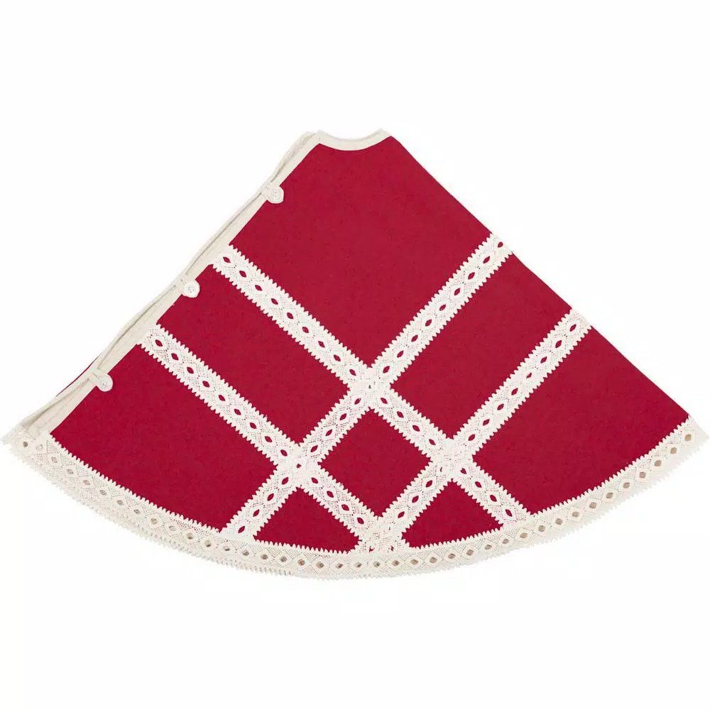 The Margot Tree Skirt is a statement of elegance for those who wish to pay homage to the timelessness of the Christmas Season. This tree skirt keeps the tradition of Christmas decor stored in grandmothers attic and taken out for only the most special occasions. An ornate diamond cut lace adorns soft felt in this enduring piece. Reverses to creme chambray. Made with cotton and felt for a luxurious and soft feel.