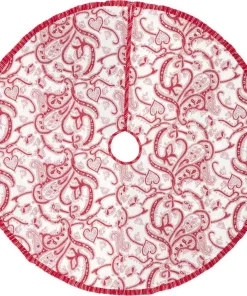 Christmas Tree Decorations VHC Brands 50 In. Natalia Cherry Red Farmhouse Christmas Decor Tree Skirt