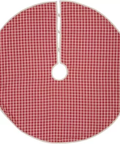 Christmas Tree Decorations VHC Brands 48 In. Red Plaid Christmas Farmhouse Decor Tree Skirt