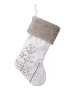 Christmas Tree Decorations Glitzhome 48 In. D White Plush With Snowflake Christmas Tree Skirt