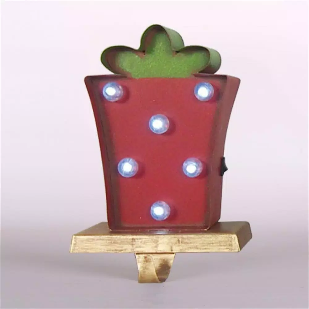 It features marquee LED lighted gift box design equipped with an iron hook on the base. Makes an excellent home decorative and practical piece for hanging your beautiful Christmas stockings. This will also be a great idea for a gift to friends or family.