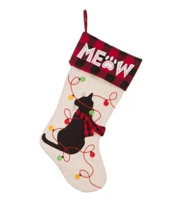 Indoor Christmas Decorations Glitzhome 21 In. L LED Embroidered Linen Christmas Stocking – Cat