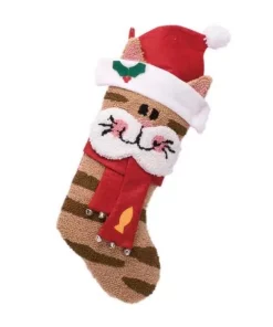 Indoor Christmas Decorations Glitzhome 22 In. H Polyester Hooked 3D Cat Stocking (2-Pack)