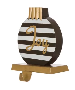 Indoor Christmas Decorations Glitzhome 6.89 In. H Wooden/Metal Striped Ornament Stocking Holder