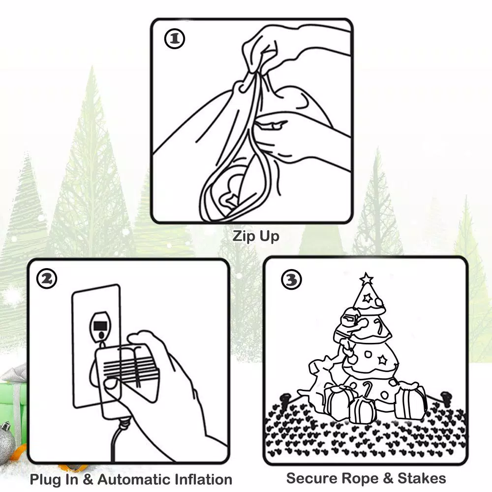 - Package includes 1 x inflatable Christmas tree 4 x ground stakes 4 x ropes 1 x fan 1 x adaptor