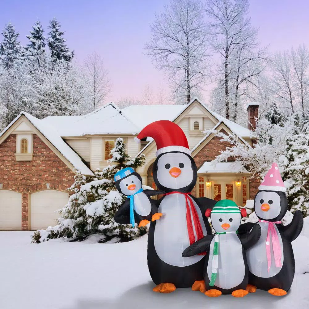 Celebrate Christmas in a big way this-year with prelit jumbo inflatables by Fraser Hill Farm. Choose from our large assortment of festive airblown inflatables to create an unforgettable holiday scene. Brighten your lawn, garden, backyard, open porch, or deck with this adorable Penguin Family. Inflate the magic of your seasonal light show, party display, or family celebration with this eye-catching decoration, certain to give your friends and family a warm welcome. You won’t need to give directions. With this blow-up inflatable, your guests will easily find your home. Setup is quick and easy. Plus, everything you need is included in your package – air blower, ropes, stakes and storage bag. Unpack it, plug it in, stake it down, then enjoy as the fun unfolds. For unique props to celebrate the Holidays, count on quality products from Fraser Hill Farm.