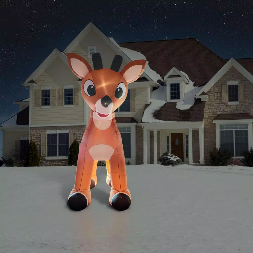 - Pre-lit: brighten your lawn, garden, or yard with this blow-up reindeer featuring a moving head and 5 internal LED lights