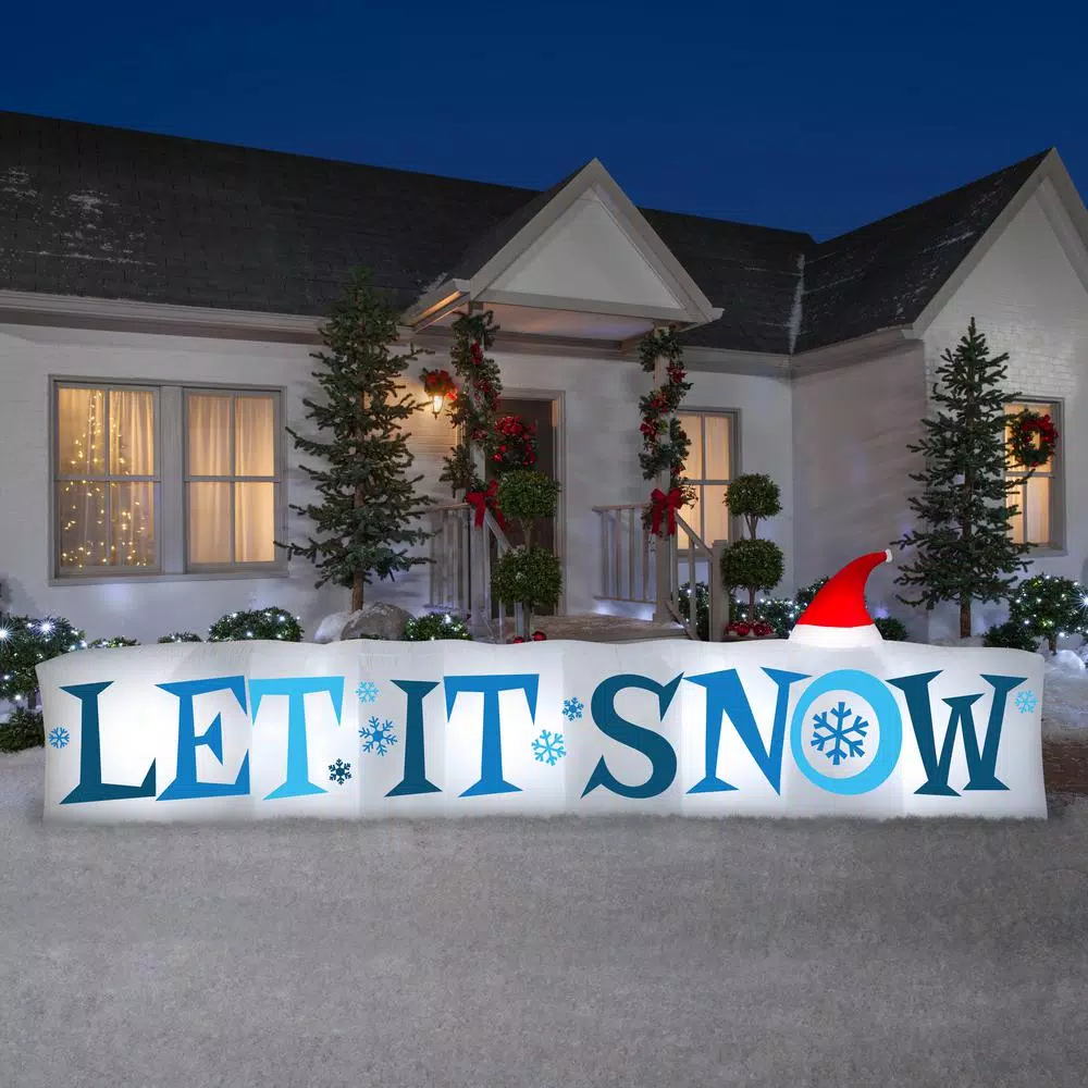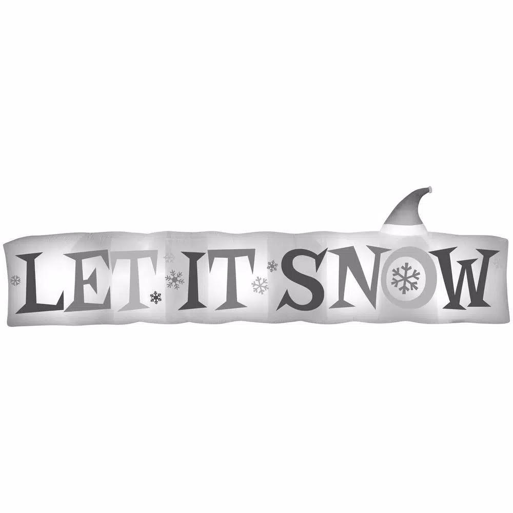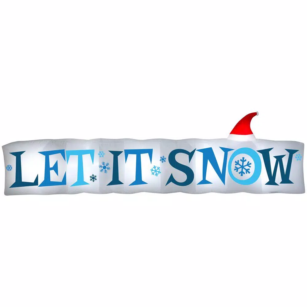 Welcome the season with an Airblown Inflatable Let It Snow sign. Accented with a Santa hat and icy blue lettering, our whimsical inflatable makes a delightful addition to your outdoor Christmas decorations. Setup is super simple. Just plug it in, stake it down and watch the magic unfold. Includes everything needed for easy outdoor setup.
