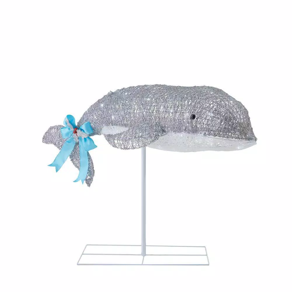 This head-turning yard sculpture will be the star of your holiday display. Featuring 80 stunning LED lights, this 30-in. dolphin decoration is made with a durable metal frame and weather-resistant fabric. Use it for indoor or outdoor spaces. The long-lasting bulbs remain cool to the touch and will shine through the season. The sculpture is easy to set up, and it includes ground stakes.