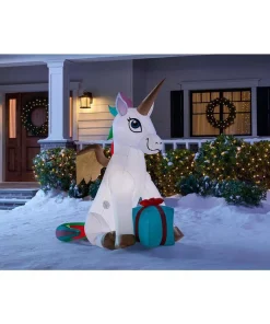 Outdoor Christmas Decorations Home Accents Holiday 5 Ft. Pre-Let LED Inflatable Unicorn