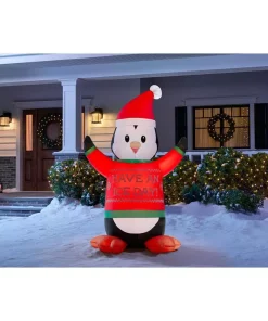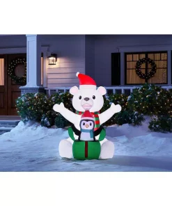 Outdoor Christmas Decorations Home Accents Holiday 4 Ft. Inflatable Bear With Penguin Scene