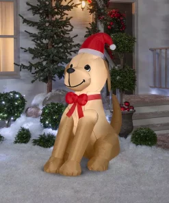 Outdoor Christmas Decorations Home Accents Holiday 6 Ft. Inflatable Golden Retriever With Bow
