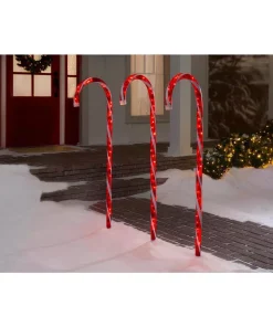 Outdoor Christmas Decorations Home Accents Holiday 4 Ft. Lighted Candy Cane (3-Pack)