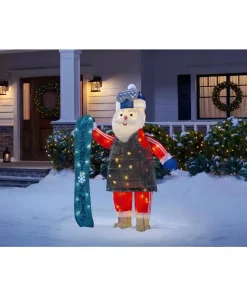 Outdoor Christmas Decorations Home Accents Holiday 4 Ft Yuletide Lane LED Santa With Snowboard